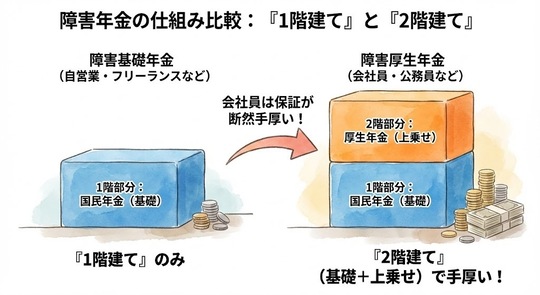 【会社員は手厚い!】障害基礎年金と障害厚生年金の違い|3級のメリットを解説