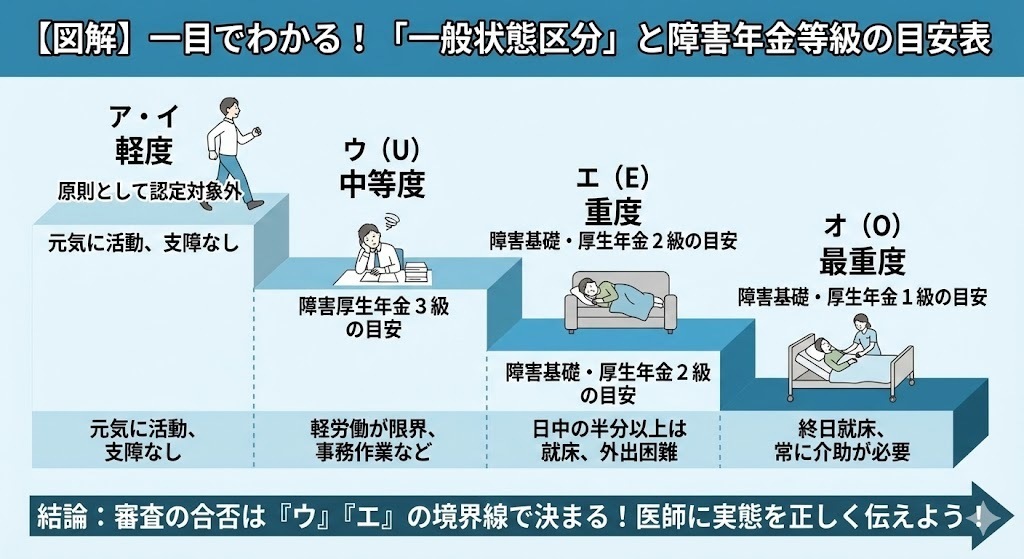 【図解】一目でわかる!「一般状態区分」と障害年金等級の目安