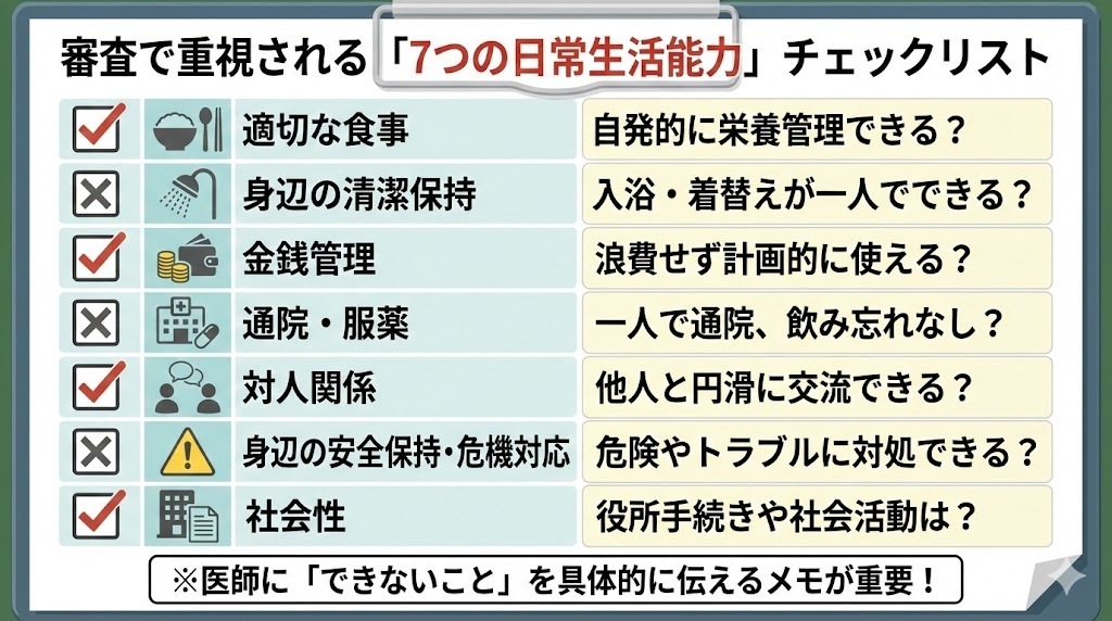 最も重要なのが、診断書にある「日常生活能力の判定」という項目です。