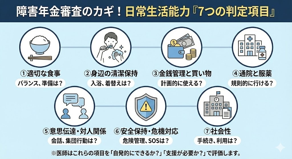 障害年金審査のカギ!日常生活能力「7つの判定項目」