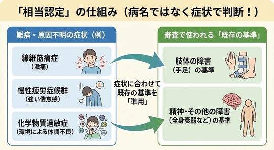 「相当認定」の仕組み(病名ではなく症状で判断!)