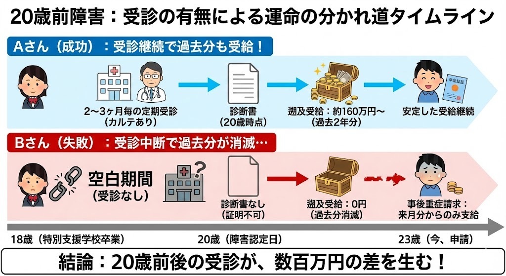 20歳前障害‗受診の有無による運命の分かれ道タイムライン