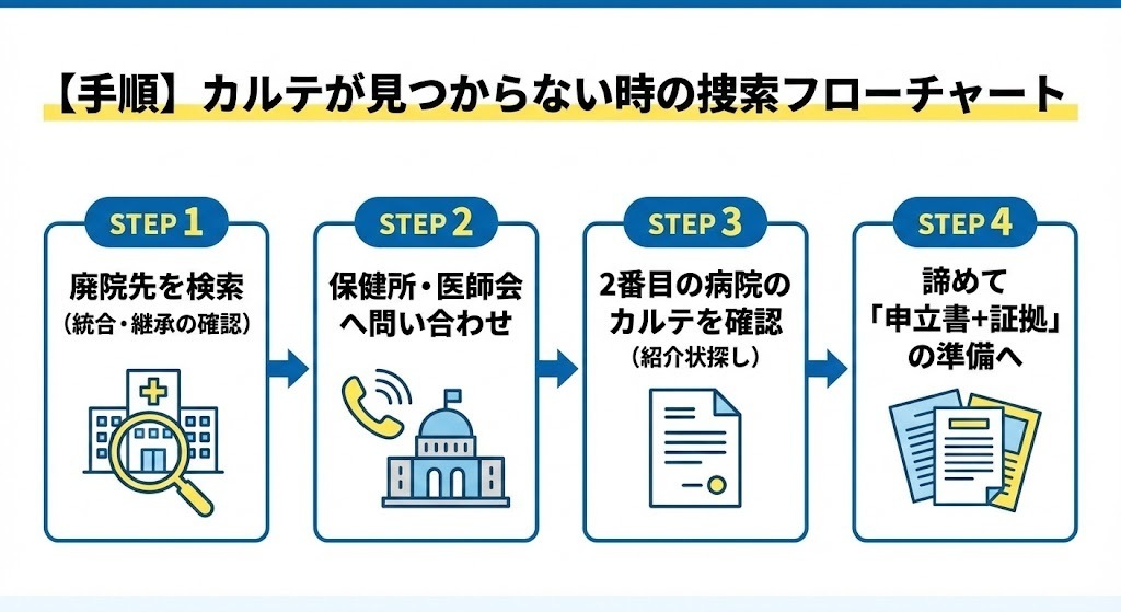 カルテがない場合、現在の主治医に事情を説明し、診断書に補足してもらうことが重要になるケースもあります。[あわせて読みたい] ▶ 失敗しない!医師への診断書依頼のコツと「渡すべきメモ」の書き方