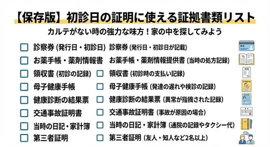 カルテがない場合、現在の主治医に事情を説明し、診断書に補足してもらうことが重要になるケースもあります。[あわせて読みたい] ▶ 失敗しない!医師への診断書依頼のコツと「渡すべきメモ」の書き方