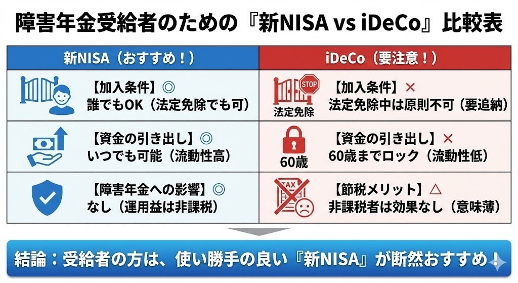 障害年金受給者のための「新NISA vs iDeCo」比較表