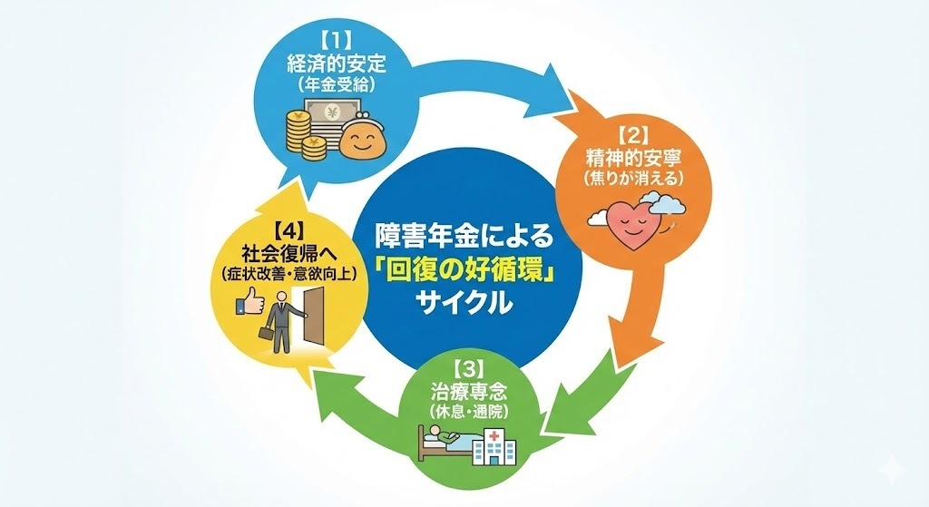 障害年金という安定した収入源を確保することで、以下のような好循環が生まれます。