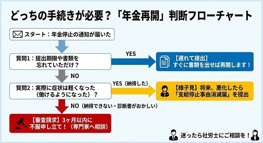 どっちの手続きが必要?「年金再開」判断フローチャート