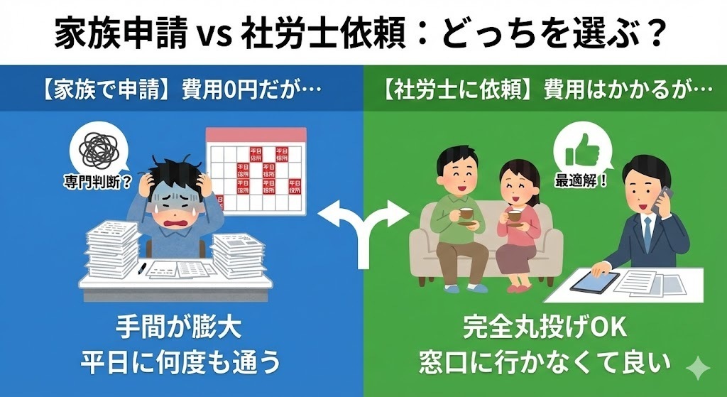 「家族がやる」のと「社労士に頼む」のとでは、何が違うのでしょうか。