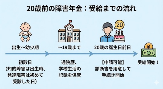 20歳前の障害年金を受給するまでの流れ|出生から20歳の誕生日前日までのタイムライン