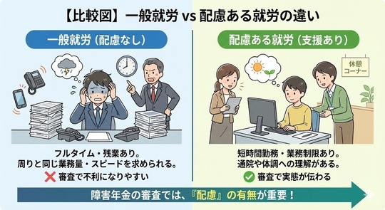 「一般就労」vs「配慮ある就労」の比較